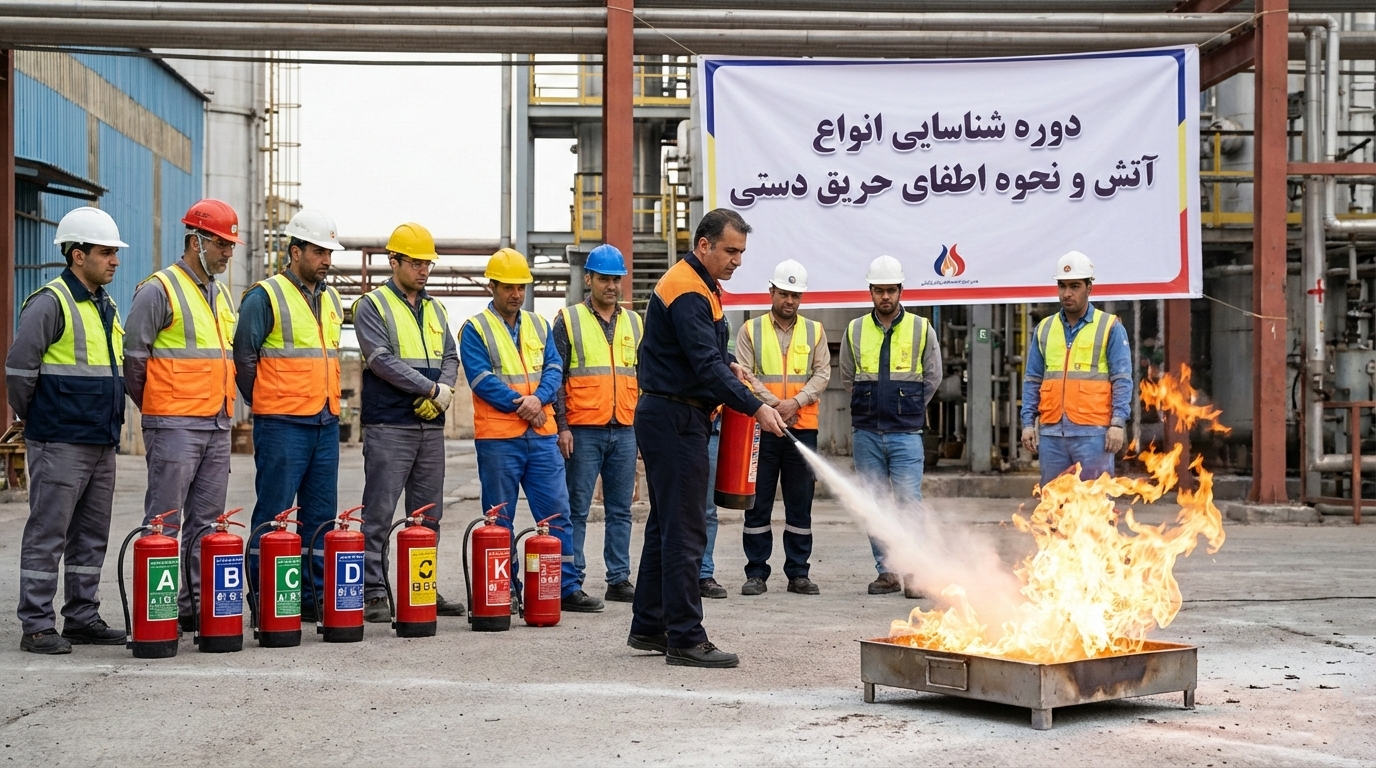 دوره شناسایی انواع آتش و نحوه اطفای حریق دستی بهصورت حضوری و آنلاین و ویژه شرکتها، کارگاهها، پروژههای صنعتی و سازمانها برگزار میگردد.